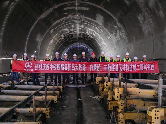 法人網(wǎng)訊 5月12日,烏大鐵路(內(nèi)蒙段)豐鎮(zhèn)隧道內(nèi),隨著最后一節(jié)整體無砟軌道床澆筑結(jié)束,中鐵四局承建的烏大高速鐵路(內(nèi)蒙段)豐鎮(zhèn)隧道無砟軌道施工作業(yè)順利完成,為該路段全線鋪軌奠定堅實基礎。