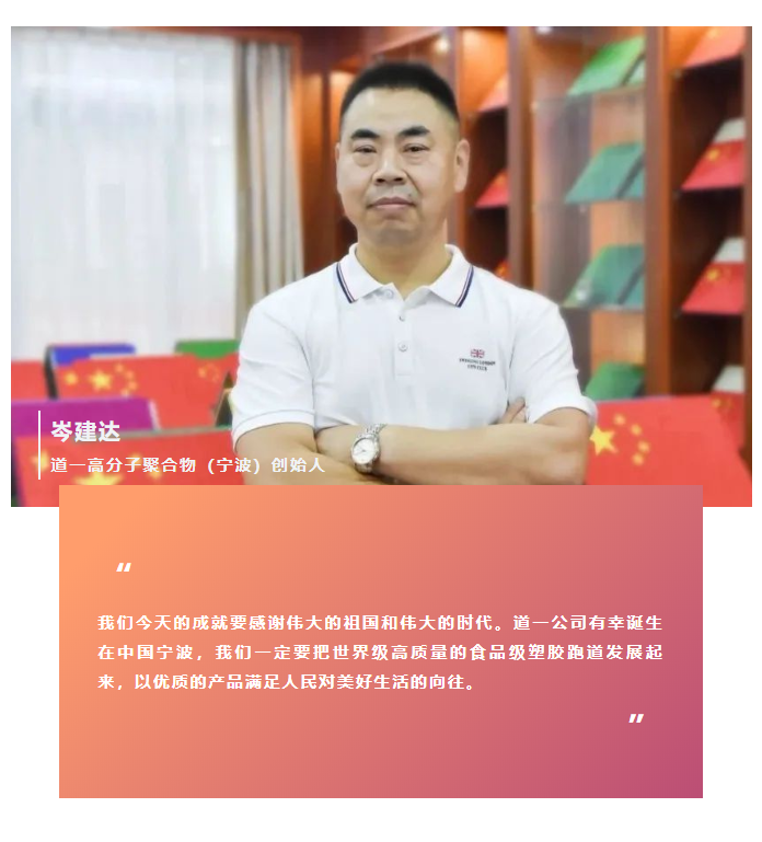 道一化學(xué)十分注重科技研發(fā)。在已有寧波山今高分子塑料有限公司20多年經(jīng)營基礎(chǔ)上,企業(yè)以創(chuàng)造出更加環(huán)保、健康和安全的新型塑膠跑道材料為己任,致力于為全球的體育運(yùn)動場地提供滿足當(dāng)下以及未來發(fā)展需求的產(chǎn)品,在實踐高質(zhì)量發(fā)展中取得了卓越成果。