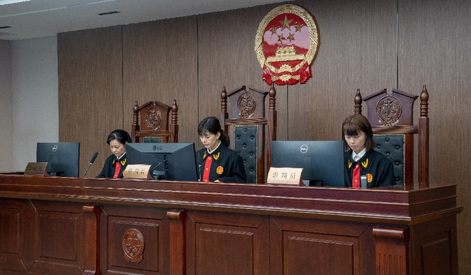 這是5月25日在成都互聯(lián)網(wǎng)法庭庭審現(xiàn)場拍攝的審判長張艷秋(中)和兩名審判員。 5月25日上午,我國中西部地區(qū)首個(gè)互聯(lián)網(wǎng)法庭——成都互聯(lián)網(wǎng)法庭,在線上公開審理了第一案——小米公司訴一網(wǎng)絡(luò)博主名譽(yù)侵權(quán)責(zé)任糾紛。 經(jīng)過近兩個(gè)小時(shí)庭審,案件將擇期宣判。這是繼杭州、北京、廣州互聯(lián)網(wǎng)法院設(shè)立以來,我國中西部地區(qū)第一個(gè)集中管轄互聯(lián)網(wǎng)案件的專業(yè)法庭正式審理的首案。 新華社記者 薛晨 攝