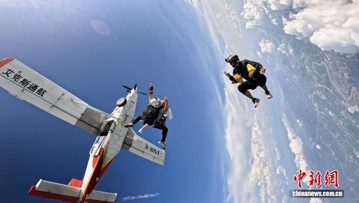引擎轟鳴刺破晴空,一架白色PC-6飛機(jī)在高空打開艙門,伴隨呼嘯的氣流,跳傘教練帶著體驗(yàn)者縱身躍出。這不是電影鏡頭,而是重慶龍興通用機(jī)場上空每當(dāng)天氣晴好時(shí)都會上演的真實(shí)場景。