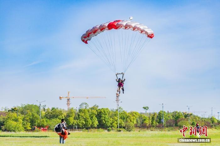 圖為游客體驗(yàn)跳傘。黃維正 攝