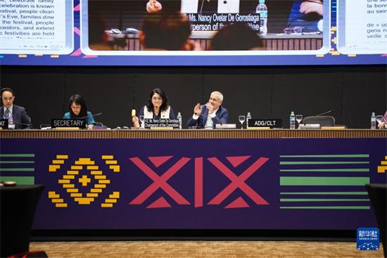這是12月4日在巴拉圭亞松森拍攝的聯(lián)合國教科文組織保護(hù)非物質(zhì)文化遺產(chǎn)政府間委員會(huì)第19屆常會(huì)評(píng)審現(xiàn)場。新華社記者 朱雨博 攝