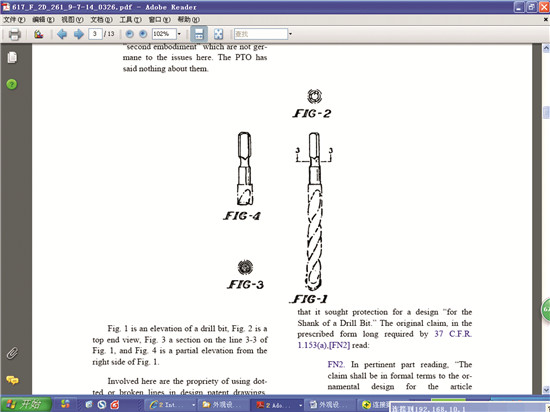 美國將產(chǎn)品的組成部分解釋為專利法意義上的“產(chǎn)品”。美國關稅與專利上訴法院在In re Zahn一案中針對如下圖所示的外觀設計指出,“雖然外觀設計必須在特定產(chǎn)品中加以實現(xiàn),但是法條并未限制到全部產(chǎn)品或者部分產(chǎn)品的外觀設計,也沒有限制到單獨銷售的產(chǎn)品的外觀設計……針對外觀設計如何在產(chǎn)品中實現(xiàn)這一點的任何限制都沒有適當依據(jù)。此處,外觀設計被實現(xiàn)在電鉆的手柄部分并且鉆頭毋庸置疑是產(chǎn)品。由此,這使得此處的外觀設計與抽象設計產(chǎn)生區(qū)別?!覀円沧⒁獾?,第一百七十一條并非指向外觀設計產(chǎn)品,而是指向產(chǎn)品的外觀設計,其包括所有類型的裝飾性設計?!北景刚酱_立部分外觀設計專利制度。