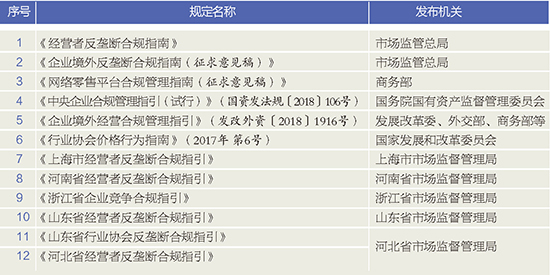 中國中央行政部門以及部分地方政府發(fā)布的反壟斷合規(guī)指南及草案。