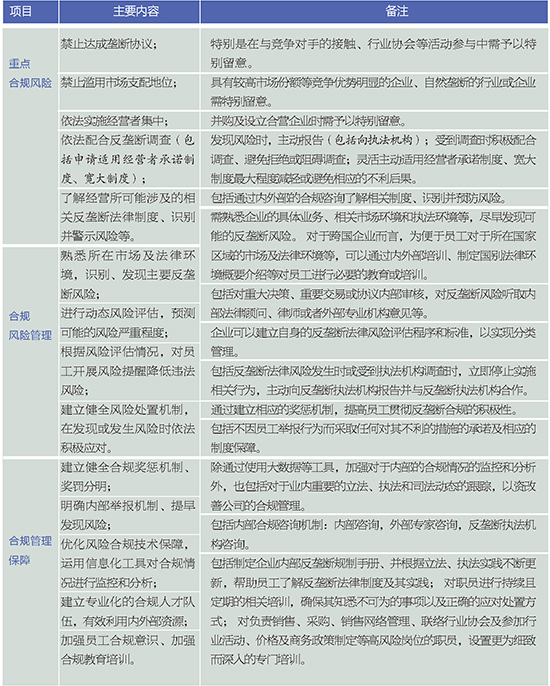 其中值得注意的是,《經(jīng)營者反壟斷合規(guī)指南》是中國首次針對反壟斷法發(fā)布的全面性的合規(guī)指南。因此,有必要對其內(nèi)容、要求予以特別關注。