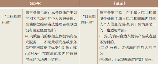 GDPR和《草案》中 “目標指向標準” 的相關(guān)規(guī)定詳見下表: