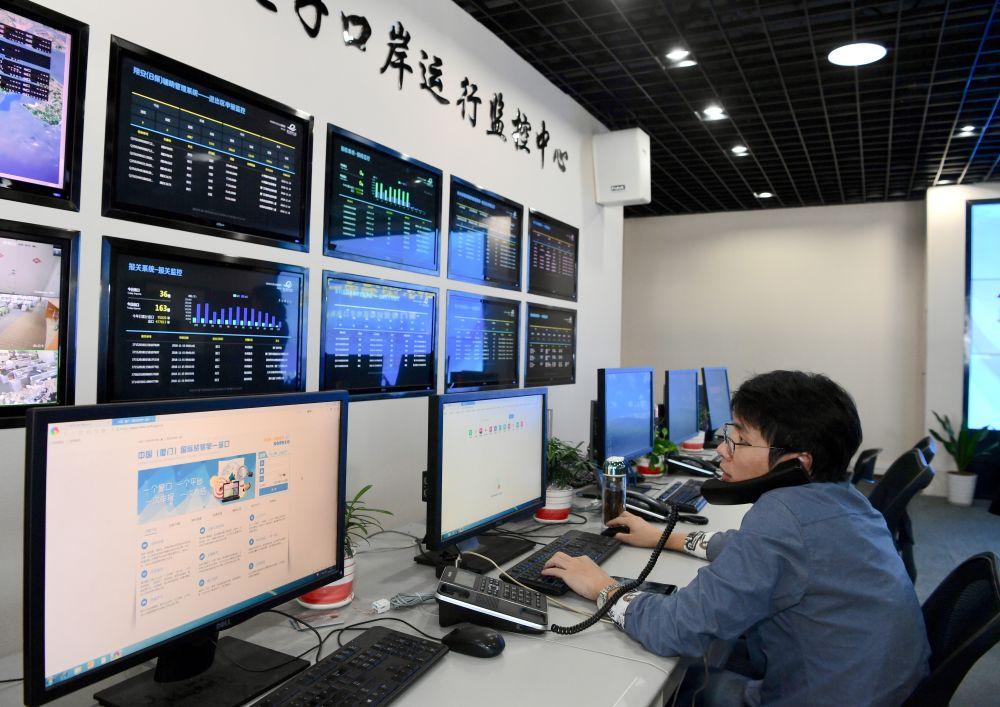 在中國(guó)(福建)自由貿(mào)易試驗(yàn)區(qū)廈門(mén)片區(qū),國(guó)際貿(mào)易“單一窗口”工作人員在網(wǎng)上受理業(yè)務(wù)(2018年11月15日攝)?!皢我淮翱凇笔顷P(guān)檢等口岸部門(mén)、地方政府相關(guān)部門(mén)、金融機(jī)構(gòu)等共同參與的口岸管理共享平臺(tái)。貿(mào)易商能夠通過(guò)一個(gè)入口提交貨物進(jìn)出口或轉(zhuǎn)運(yùn)所需要的單證或電子數(shù)據(jù),實(shí)現(xiàn)“一個(gè)平臺(tái)、一點(diǎn)接入、一次申報(bào)、一次辦結(jié)”。
