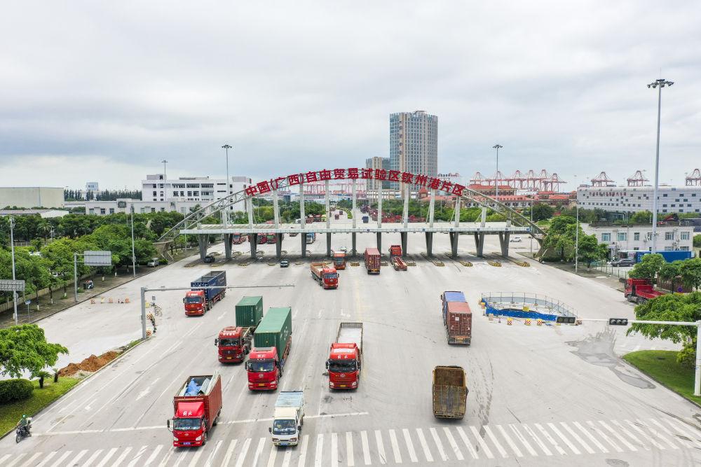 這是中國(guó)(廣西)自由貿(mào)易試驗(yàn)區(qū)欽州港片區(qū)(2024年5月20日攝,無(wú)人機(jī)照片)。近年來(lái),廣西以高水平共建西部陸海新通道為牽引,建設(shè)面向東盟的國(guó)際大通道、大平臺(tái),加快打造向海經(jīng)濟(jì),推動(dòng)構(gòu)建陸海相通、多區(qū)聯(lián)動(dòng)的開(kāi)放格局。