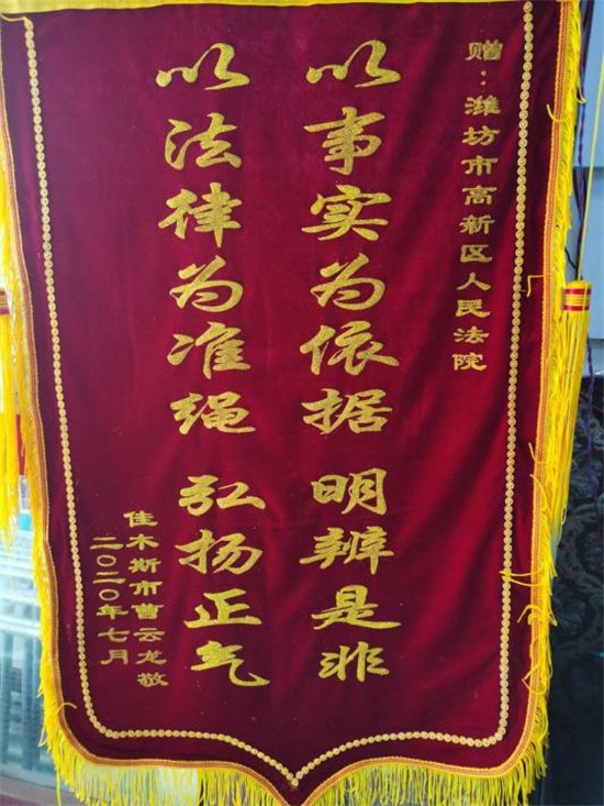 立案之后,由于疫情的原因貴院遲遲沒(méi)有安排開(kāi)庭,使我更加感到惴惴不安。終于接到法院的傳票,我提前兩天就來(lái)到了濰坊。因黑龍江省疫情出現(xiàn)反復(fù),我方為了配合防疫工作,口頭提出了延期審理。但貴院的高鵬法官考慮到我們遠(yuǎn)在一千多公里的黑龍江省,往返費(fèi)用較大,其本人及合議庭成員在充分做好防護(hù)的前提下,準(zhǔn)時(shí)開(kāi)庭。在庭審過(guò)程中,高鵬法官讓雙方當(dāng)事人及代理人充分發(fā)表意見(jiàn),其控制庭審節(jié)奏、駕馭庭審的能力,嚴(yán)謹(jǐn)?shù)膶徟凶黠L(fēng),讓我感受到了高鵬法官團(tuán)隊(duì)公正、文明的敬業(yè)精神。