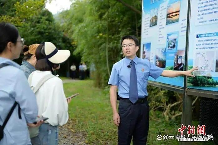 9月15日,昆明市西華濕地公園,昆明市西山區(qū)人民檢察院檢察官王石良介紹滇池生態(tài)保護(hù)治理情況。西山區(qū)人民檢察院供圖