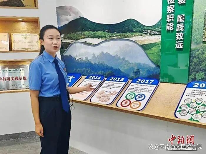 9月18日,德宏州生物多樣性保護(hù)檢察公益訴訟教育基地展廳,盈江縣人民檢察院第四檢察部四級(jí)檢察官助理唐圓圓介紹公益訴訟檢察守護(hù)生物多樣性相關(guān)工作。張文暉 攝。