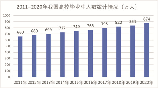 據(jù)教育部數(shù)據(jù)顯示,2020年應(yīng)屆高校畢業(yè)生人數(shù)高達(dá)874萬人,同比增加40萬人,再創(chuàng)歷史新高。另一方面,由于受疫情影響,企業(yè)招聘需求則明顯下降。兩者一增一減之間,形成了巨大“剪刀差”,使得今年大學(xué)生就業(yè)市場競爭異常激烈。