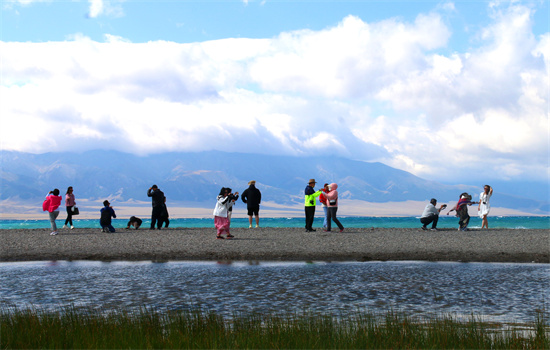 ▲2023 年 8 月 12 日,新疆塔城,游客在賽里木湖景區(qū)環(huán)湖觀光游玩