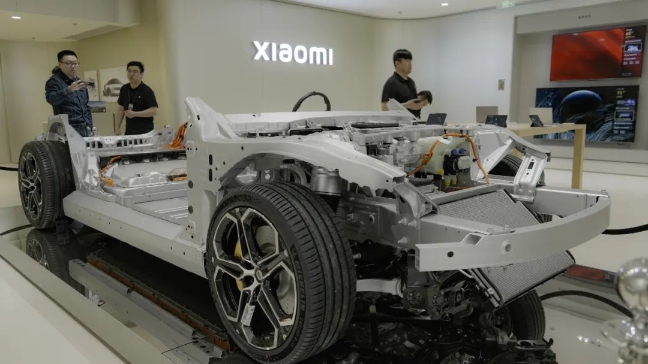 ▲3月29日,小米之家(東方廣場旗艦店)內(nèi)的新能源汽車車體吸引了不少消費者 宋逗/攝