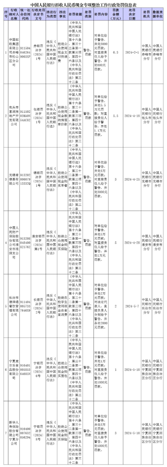 近日,中國人民銀行對多起拒收人民幣現(xiàn)金的處罰案例予以公示,涉事單位包括郵政公司、房地產(chǎn)公司、餐飲公司、保險公司等,拒收場景五花八門,有的拒絕公眾使用現(xiàn)金支付快遞費,有的拒絕現(xiàn)金繳納房屋差價款,有的拒絕現(xiàn)金購買早餐……