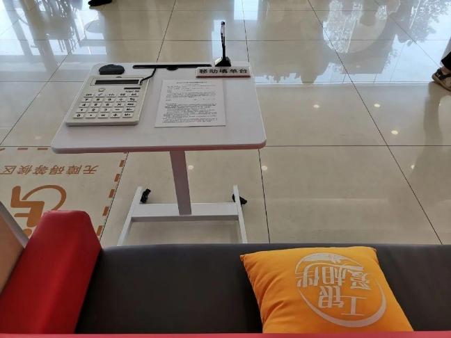 ▲工商銀行科學(xué)園南路支行內(nèi),簽字臺(tái)上擺放的是大字版計(jì)算器銀昕/攝