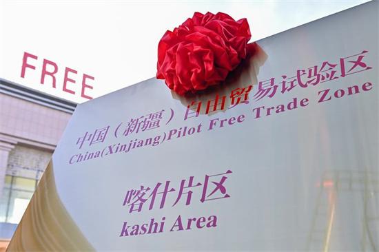 2023年11月11日拍攝的中國(guó)(新疆)自由貿(mào)易試驗(yàn)區(qū)喀什片區(qū)牌匾。新華社記者 丁磊 攝