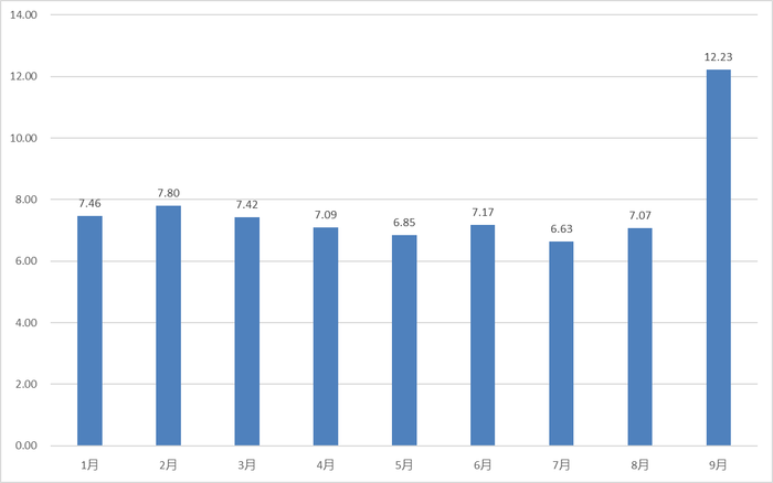 (上述備案用時(shí)為根據(jù)產(chǎn)品成立時(shí)間以及備案時(shí)間統(tǒng)計(jì)所得,已剔除非工作日,其中,9月的數(shù)據(jù)截至9月16日)