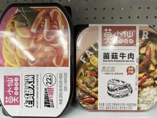不僅生鮮超市售賣預制菜,很多便利店、小超市也紛紛擠進預制菜賽道。記者走訪多家超市發(fā)現(xiàn),因多數超市沒有容量較大、可儲存預制菜的保鮮柜,以售賣自加熱預制菜為主。如“海底撈自助火鍋套餐”“霸蠻嗦鮮粉”“開小灶生活料理組合”等,這些自加熱預制菜操作更為方便,無需明火或微波爐加熱,只需將發(fā)熱包放入盒底,倒入常溫水便會自加熱。