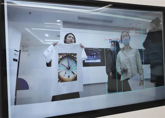 瑞萊智慧工作人員在公司現場向記者演示:正常情況下,當人站在攝像頭前,畫面中出現一個目標框,會被實時檢測出來。但如果在胸前放一件帶有特殊花紋的T恤,再次站在攝像頭前,目標框就消失了。