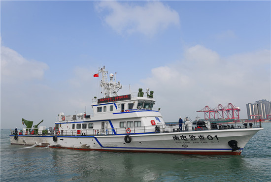近日,由南方電網(wǎng)公司自主建造的海底電纜綜合運(yùn)維船“南電監(jiān)查01”在??诮桓妒褂?。這是國內(nèi)首艘具備對500千伏海底電纜進(jìn)行高速巡航和低速定位檢測的海纜運(yùn)維船,填補(bǔ)了國內(nèi)海纜運(yùn)維檢測方面的技術(shù)空白。該船可實現(xiàn)海纜不停電檢測作業(yè),跨海電纜檢修期間不會給居民用電帶來影響。新華社記者 蒲曉旭 攝