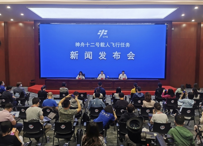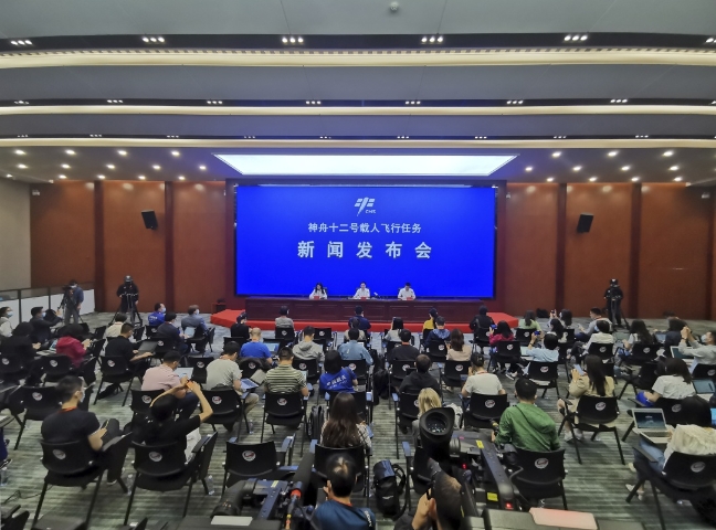 6月16日,神舟十二號載人飛行任務新聞發(fā)布會在酒泉衛(wèi)星發(fā)射中心召開。新華社記者 琚振華 攝