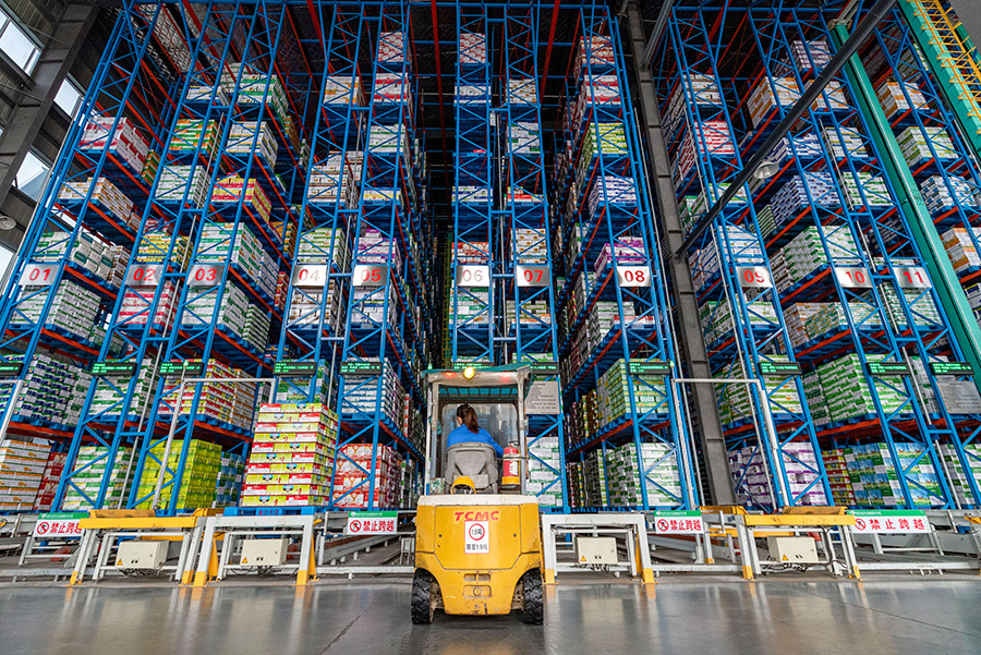 10月9日,在位于合肥循環(huán)經濟示范園的一座農資智能倉庫內,工人們忙著出入庫、裝車各種農藥。