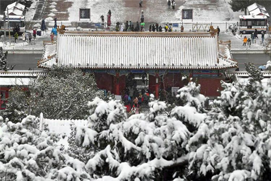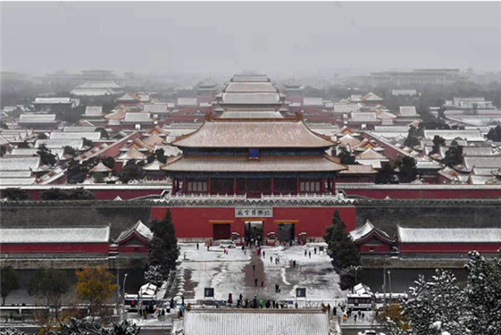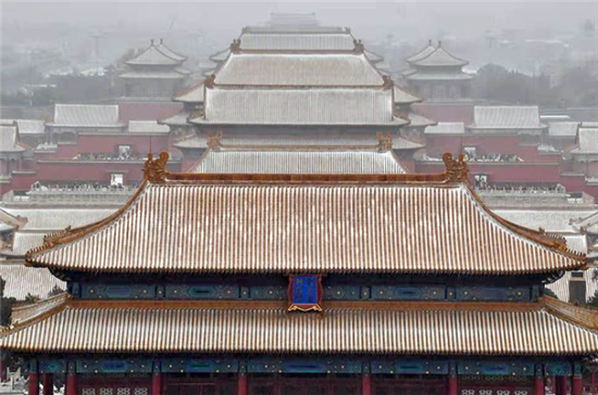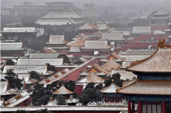 紅墻、黃瓦的紫禁城覆蓋上白雪。