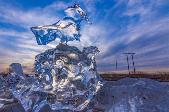 4月2日,吉林,冰融化后而成的自然冰雕,形似小鳥。