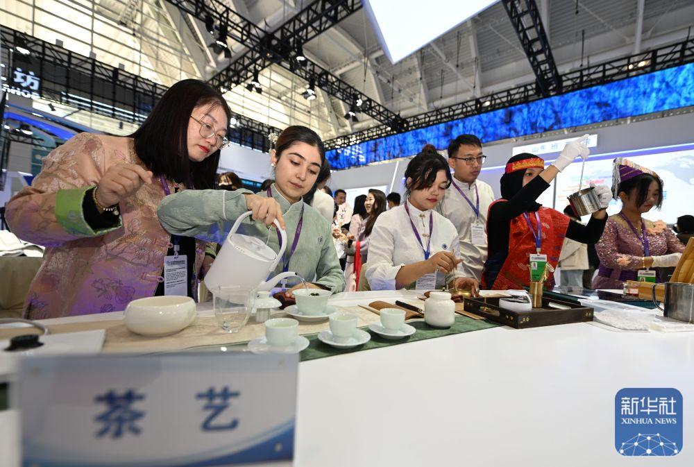 ↑ 11月21日,參會(huì)者在職業(yè)教育專題展上展示茶藝。新華社記者 趙子碩 攝