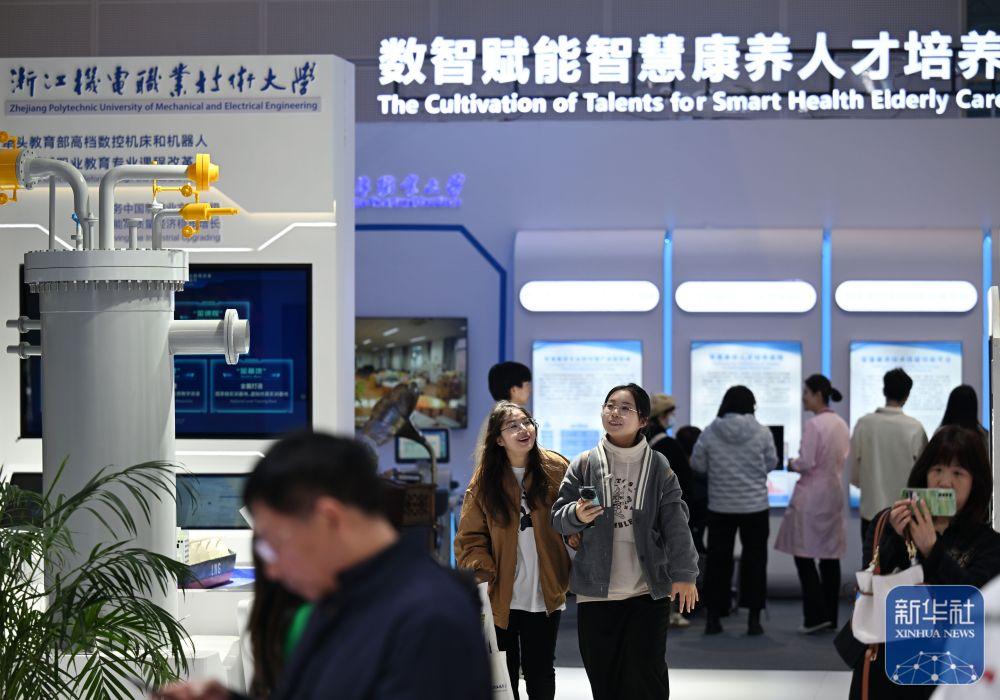 ↑ 11月21日,參會(huì)者在職業(yè)教育專題展上參觀。新華社記者 趙子碩 攝