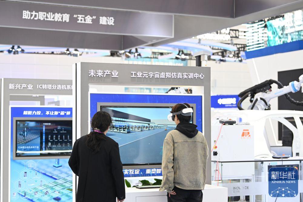 ↑ 11月21日,參會(huì)者在職業(yè)教育專題展上體驗(yàn)未來產(chǎn)業(yè)仿真實(shí)訓(xùn)中心。新華社記者 李然 攝