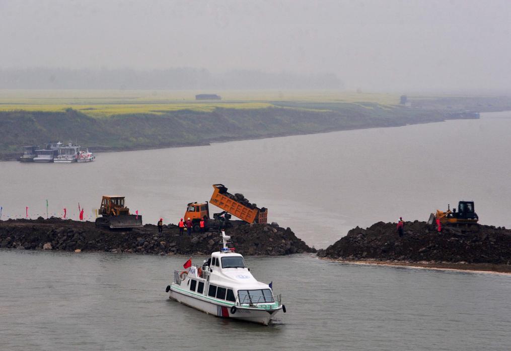 2013年3月22日拍攝的南水北調(diào)中線興隆樞紐截流現(xiàn)場。新華社記者 肖藝九 攝