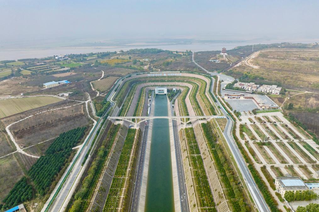 2023年11月15日在山東聊城拍攝的南水北調(diào)東線穿越黃河工程。新華社記者 劉詩平 攝