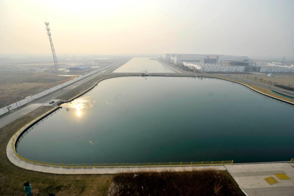 2014年12月27日,長江水流入天津?yàn)I海新區(qū)津?yàn)I水廠的調(diào)節(jié)池內(nèi)。當(dāng)日,天津市南水北調(diào)中線工程正式通水。新華社記者 岳月偉 攝