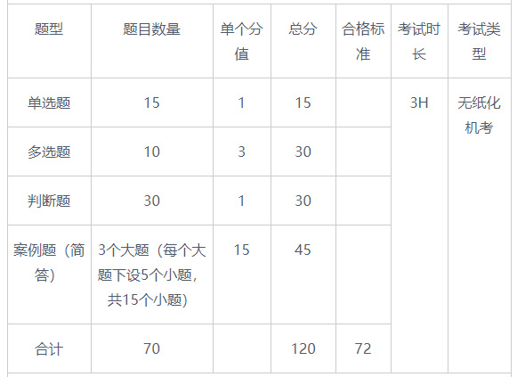 中級(jí)企業(yè)合規(guī)師考試,滿分120分,72分及格;