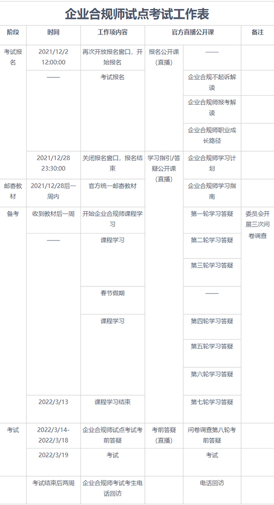 備注:官方公開(kāi)課具體時(shí)間會(huì)在官方微信公眾號(hào)“企業(yè)合規(guī)師考試網(wǎng)”與“企業(yè)合規(guī)專業(yè)委員會(huì)”發(fā)布。