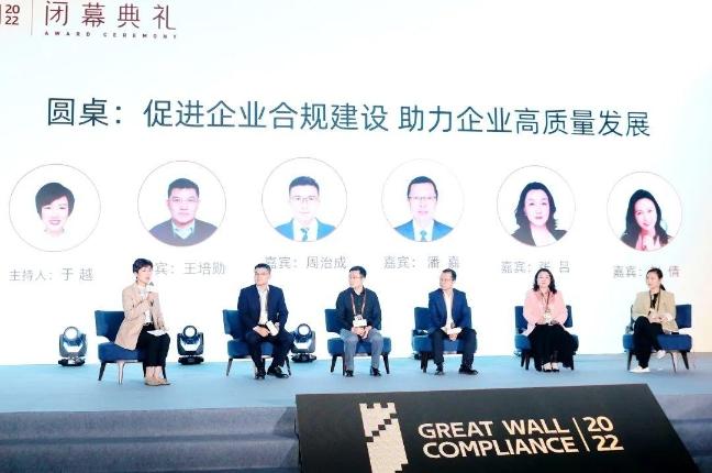 閉幕典禮還增設(shè)了圓桌論壇環(huán)節(jié)。中國質(zhì)量認(rèn)證中心體系認(rèn)證部經(jīng)理王培勛,中國國際技術(shù)智力合作集團(tuán)有限公司法務(wù)合規(guī)與審計(jì)部副部長周治成,北京一輕控股有限責(zé)任公司總法律顧問潘嘉,中華全國律師協(xié)會(huì)企業(yè)合規(guī)法律專業(yè)委員會(huì)副主任、泰和泰(廣州)律師事務(wù)所主任張呂,無訟網(wǎng)絡(luò)科技(北京)有限公司首席營銷官趙倩圍繞“促進(jìn)企業(yè)合規(guī)建設(shè),助力企業(yè)高質(zhì)量發(fā)展”展開深入研討。