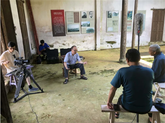 圖為作者在配合掃黑除惡專項(xiàng)斗爭(zhēng)創(chuàng)作的《揚(yáng)眉劍出鞘》排練現(xiàn)場(chǎng)。