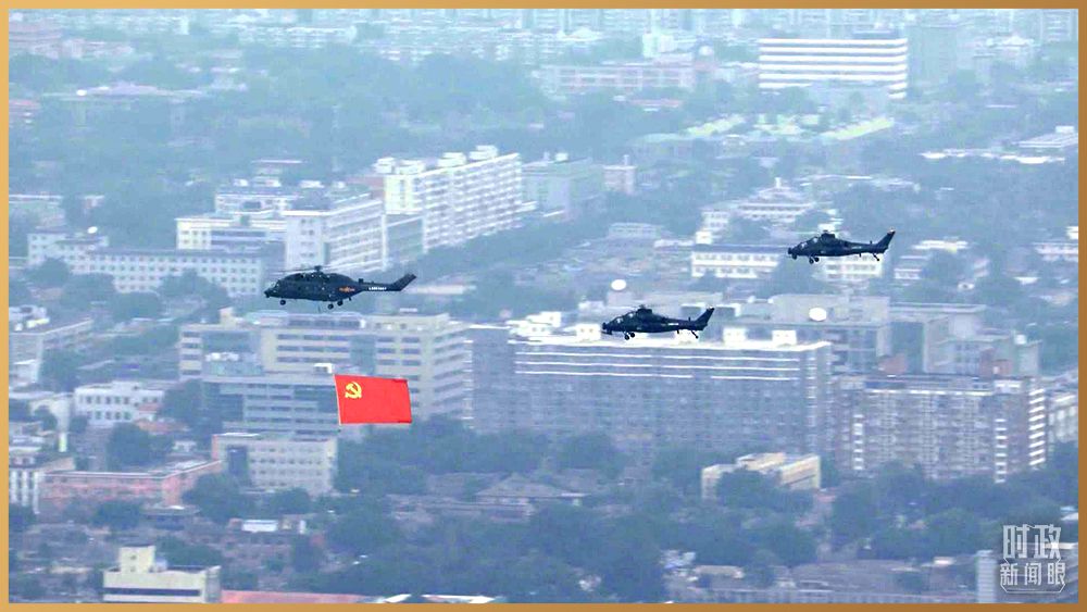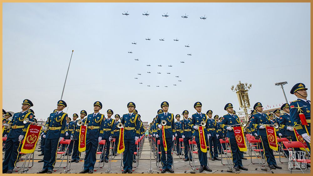 7點53分,習(xí)近平等黨和國家領(lǐng)導(dǎo)人來到天安門城樓主席臺。隨后,中國人民解放軍71架戰(zhàn)機飛向天安門廣場。