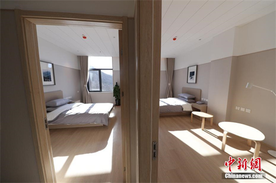 居住區(qū)的每個房間都配備智能門鎖,可通過指紋、密碼或刷卡開門;智能溫度調(diào)節(jié)系統(tǒng)、新風(fēng)系統(tǒng)、智能紅外感應(yīng)、可視對講等十多種功能,均可通過房間控制器進行操作;有“記憶功能”的智能床讓人眼前一亮,它配有遙控器,可調(diào)成睡姿、坐姿等不同場景,為脊柱提供最佳支撐。