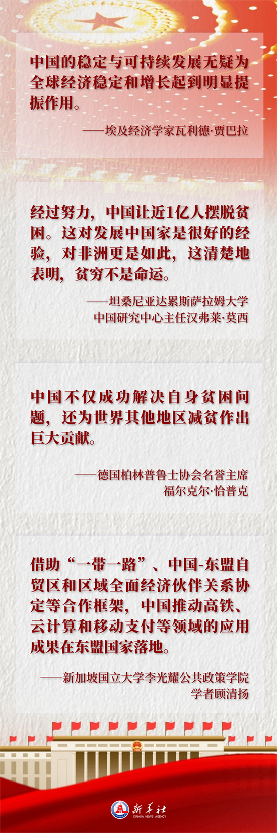 “中國經濟成功,得益于巨大體量和巨大活力”“中國科技成果的廣泛應用也為以東南亞地區(qū)為代表的周邊區(qū)域提供發(fā)展動能”“中國推動高質量發(fā)展對世界經濟產生深遠影響”“中國對全球化的推動有利于實現(xiàn)世界更具包容性的發(fā)展”……