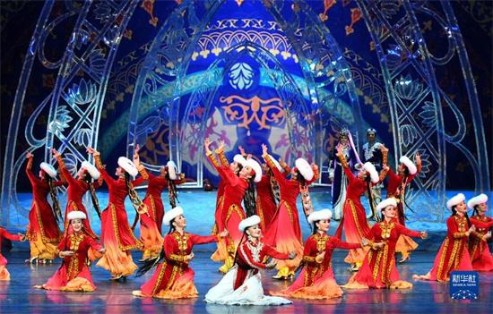在新疆木卡姆藝術團劇場,演員在表演《木卡姆印象》(2017年8月3日攝)。新華社記者 王菲 攝