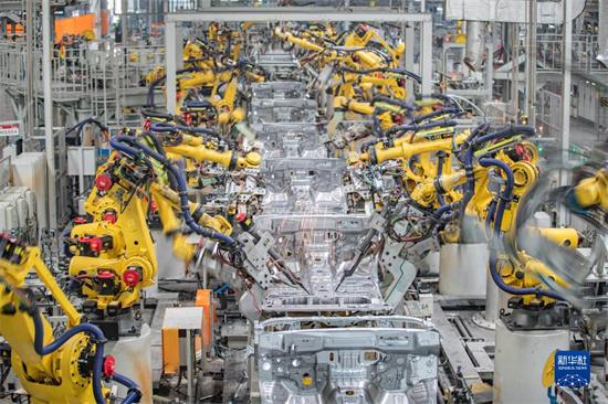 3月1日,在長城汽車重慶永川生產(chǎn)基地焊裝車間,智能化焊接機器人在進行焊接作業(yè)。新華社記者 黃偉 攝