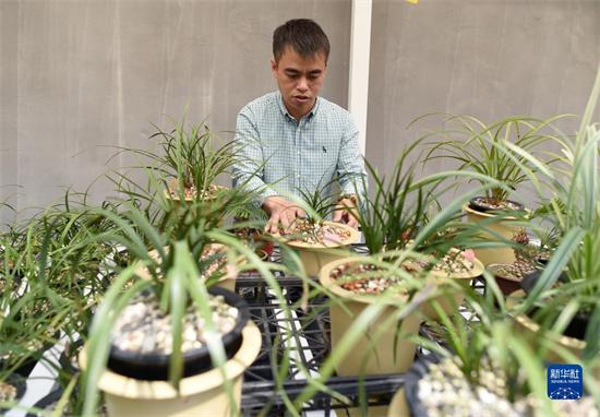 浙江省紹興市柯橋區(qū)漓渚鎮(zhèn)棠棣村的村民在照料蘭花(2018年4月25日攝)。新華社記者 韓傳號 攝
