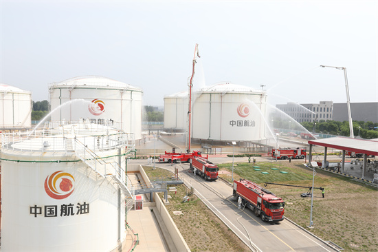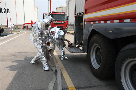 本次演練模擬大興機(jī)場(chǎng)油庫(kù)突發(fā)火情,中航油(北京)機(jī)場(chǎng)航空油料有限責(zé)任公司迅速采取企業(yè)自救,大興機(jī)場(chǎng)調(diào)派機(jī)場(chǎng)消防和急救力量到場(chǎng)救援,北京市消防救援總隊(duì)緊急調(diào)派屬地、周邊專(zhuān)業(yè)消防救援力量馳援,市、區(qū)兩級(jí)相關(guān)部門(mén)組建現(xiàn)場(chǎng)指揮部,聯(lián)合開(kāi)展危險(xiǎn)化學(xué)品火災(zāi)應(yīng)急演練。