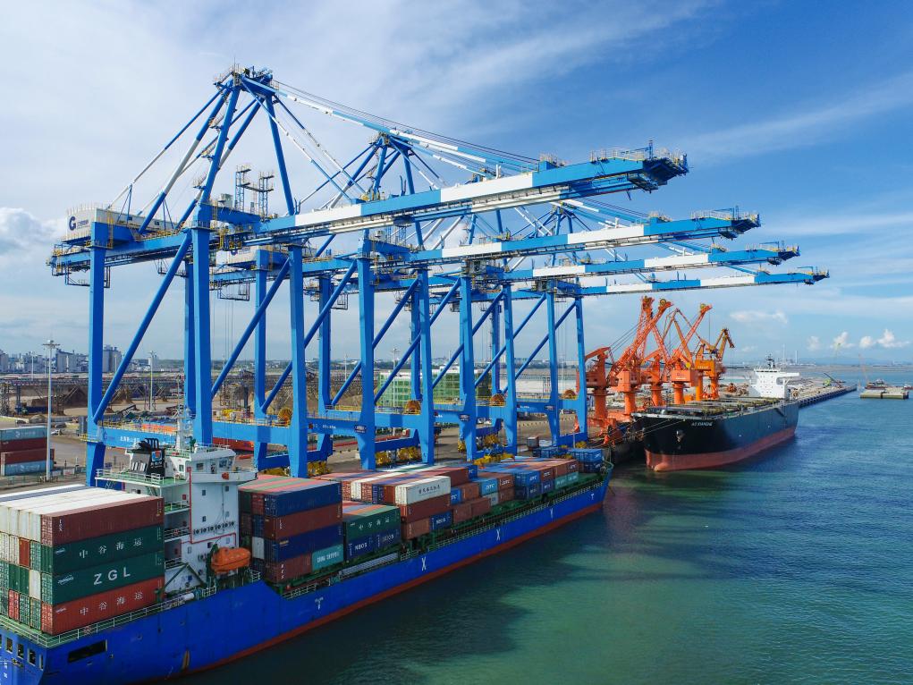 廣西北海鐵山港區(qū)集裝箱船舶作業(yè)現(xiàn)場。新華社發(fā)(北港融媒體中心供圖)