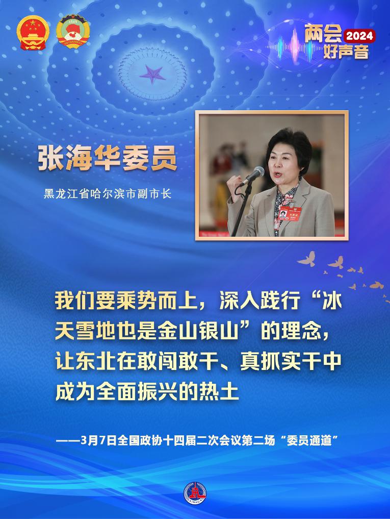 “人山人海的冰雪大世界、人頭攢動(dòng)的中央大街,讓我們真切感受到中國(guó)經(jīng)濟(jì)持續(xù)回升向好的濃濃暖意。”黑龍江省哈爾濱市副市長(zhǎng)張海華委員談到“爾濱”走紅和“冰雪熱”,充滿信心地說,“我們要乘勢(shì)而上,深入踐行‘冰天雪地也是金山銀山’的理念,讓東北在敢闖敢干、真抓實(shí)干中成為全面振興的熱土?!?/p>