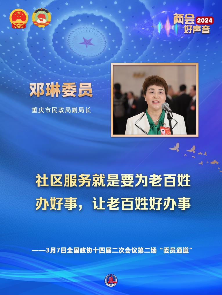 “家門口”的服務(wù)直接關(guān)乎老百姓的獲得感、幸福感?!吧鐓^(qū)服務(wù)就是要為老百姓辦好事,讓老百姓好辦事?!敝貞c市民政局副局長(zhǎng)鄧琳委員說,現(xiàn)在重慶的社區(qū)基本都有了黨群服務(wù)中心,還著力打造一刻鐘便民生活圈,針對(duì)老人、兒童、特殊困難群體等提供相關(guān)服務(wù)。在她看來,社區(qū)服務(wù)供給需要多方協(xié)同發(fā)力,相信未來會(huì)有更多可觸可感的為民便民安民服務(wù)送到百姓家門口。