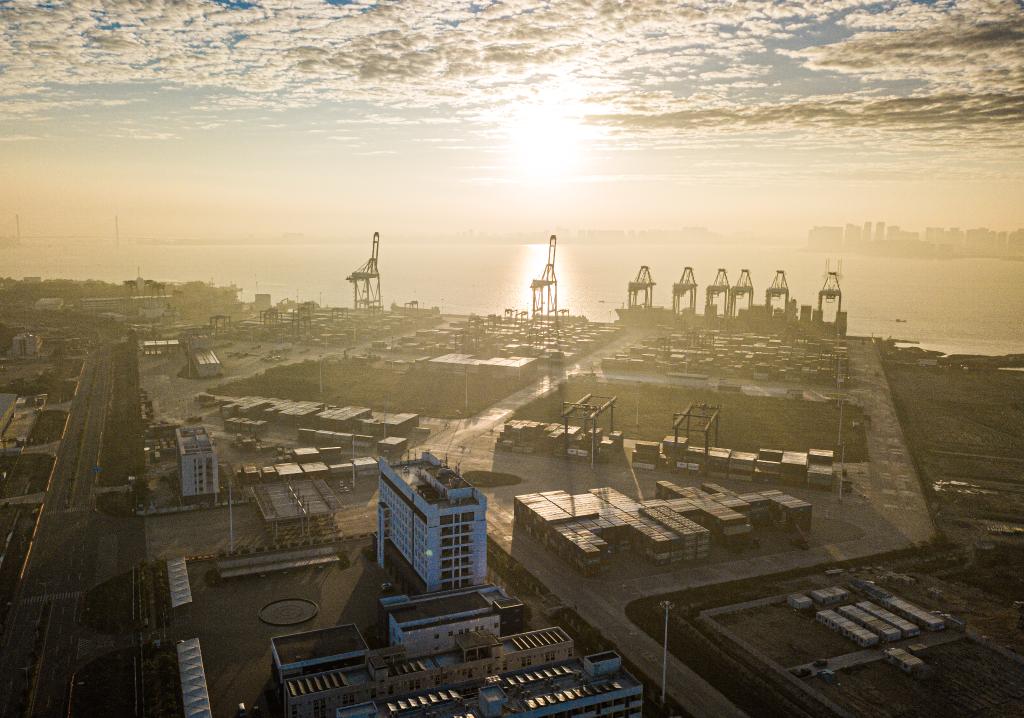 2024年1月1日在海南省洋浦經(jīng)濟(jì)開發(fā)區(qū)拍攝的海南自貿(mào)港集裝箱航運(yùn)樞紐——洋浦國(guó)際集裝箱碼頭(無人機(jī)照片)。新華社記者 蒲曉旭 攝